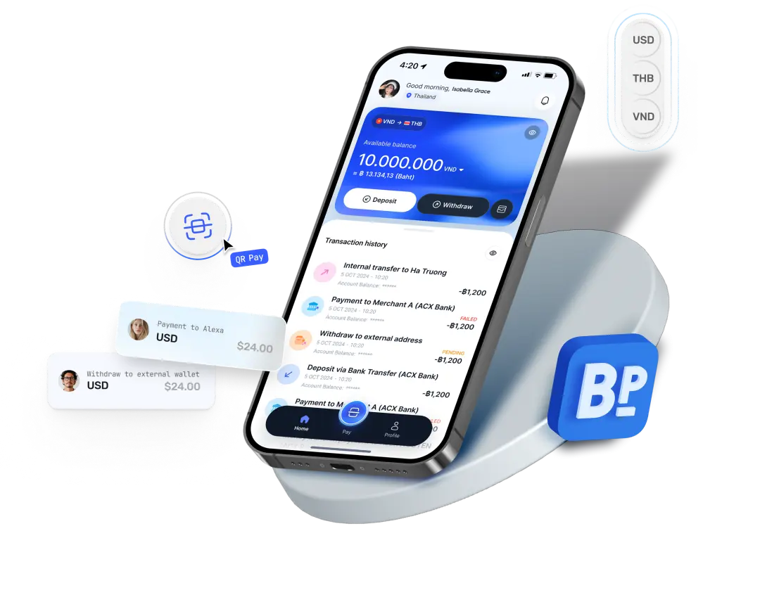 Chúng tôi cung cấp giải pháp thanh toán liền mạch dành cho người nước ngoài tại Đông Nam Á, cho phép thực hiện các giao dịch như người địa phương mà không cần tài khoản ngân hàng.